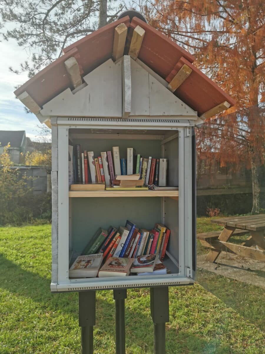 CABANE À LIVRES Démarche en ligne Actualités Agenda Galerie photos & vidéos Contacter ma mairie ou un élu Retour Quoi de plus agréable que de bouquiner à l’ombre d’un arbre tranquillement installé pendant que votre enfant / petit-enfant joue dans l’aire de jeux ? Et si vous n’avez pas fini votre livre, prenez-le et apportez-le chez vous pour le terminer en toute tranquillité! En complément des ouvrages accessibles à la ludo-bibliothèque, la municipalité a installé une jolie cabane à livres Place Du Souvenir Français. De quoi agrémenter son après-midi ! Vous y trouverez des livres en tous genres : de la bande dessinée au roman contemporain en passant par la littérature enfantine. Ce système d’échange gratuit entre citoyens est un moyen d’offrir une nouvelle vie à des livres « qui prennent la poussière » ! Chaque livre emprunté peut être gardé, offert ou remis dans la cabane. Elle est en accès libre et ouverte à tous. Le fonctionnement de cette cabane à livres est fondé sur la confiance. Des enfants ouvrent la cabane à livres, nous vous demandons beaucoup de bienveillance dans les ouvrages que vous mettrez à disposition des citoyens. Retrouverez ici le règlement de cette boîte à livres. Mode d’emploi : Je prends un livre : Servez-vous, c’est gratuit et ouvert à tous. Chaque livre peut être gardé ou remis dans la cabane alors n’hésitez pas ! Je dépose un livre : Pour enfant ou adulte, que ce soit des livres tout public, roman, bande-dessinée ou documentaire, tous les livres sont les bienvenus mais ils doivent être en bon état (les cabanes à livres ne sont pas des poubelles !) En revanche, n’oubliez pas que les livres sont mis à la vue de tous, adultes et enfants, n’y déposez pas des ouvrages réservés à un public averti ! Petit plus : Si vous avez aimé un livre, n’hésitez pas à partager ce plaisir en glissant une fiche avec un petit mot.
