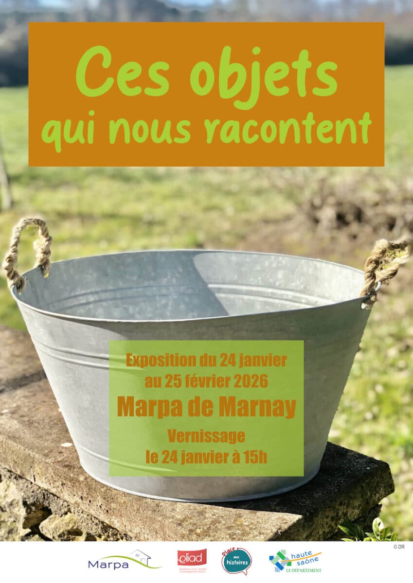 Exposition « Ces objets qui nous racontent » Démarche en ligne Actualités Agenda Galerie photos & vidéos Contacter ma mairie ou un élu Retour Informations Date Du 24.01.2026 Au 25.02.2026 Lieu MARPA Rue du Pont Charrot 70150 MARNAY Organisateur Marpa de Marnay 03 84 31 93 24 à la MARPA de Marnay, du 24 janvier au 25 février 2026. Des bénévoles de l’association Place aux histoires, des membres de familles et des salariées ont recueilli de précieux récits de vie au sein de la MARPA. Les résidents ont partagé l’histoire d’objets qui ont marqué leur vie ou qui leur sont particulièrement chers. Pour enrichir cette exposition, un ancien photographe en retraite a gracieusement réalisé des portraits des résidents qui le souhaitaient. Rendez-vous le 24 janvier à 15h pour déguster la galette et participer au vernissage de cette belle exposition.