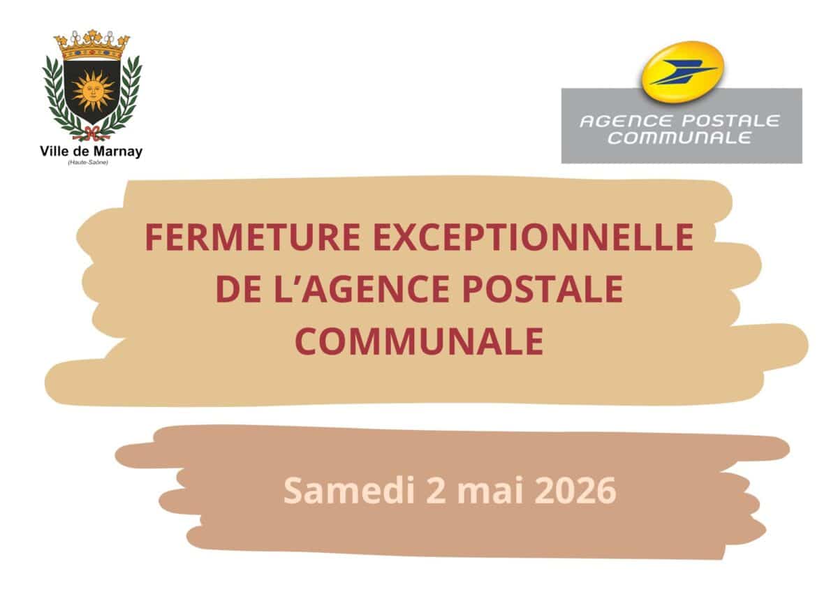 Agence Postale Communale Démarche en ligne Actualités Agenda Galerie photos & vidéos Contacter ma mairie ou un élu Bienvenue dans votre agence postale communale ! Depuis le mercredi 21 mai 2025, la Ville de Marnay dispose désormais d’une Agence Postale Communale, un service de proximité installé dans les locaux de la mairie situé 2 rue Carnot. Ce nouvel espace permet aux habitants de réaliser leurs démarches postales courantes sans avoir à se déplacer loin. 📌 Services proposés Vente d’enveloppes Prêts-à-Poster et d’emballages Colissimo et Philatéliques Fourniture d’autres produits Courrier/Colis sur commande Dépôt des objets y compris recommandés Retrait des lettres et colis en instance Service de proximité (contrat de réexpédition du courrier, garde du courrier, abonnement mobilité et Prêt-à-Poster de réexpédition) Retrait et dépôt d’espèces 🔎 Information clients 🕐 Les horaires d’ouverture Françoise vous y accueille avec plaisir pour répondre à vos besoins : Fermeture exceptionnelle 📍 Où ? L’agence est située en face de l’accueil du secrétariat de Mairie. Ce service a été mis en place par la commune en lien avec La Poste, afin de maintenir un service public essentiel au cœur de notre territoire. Il vient renforcer l’offre de services disponibles à Marnay, dans un souci de proximité et de simplicité pour les usagers. 🚗 Où me garer ? Trois places « arrêt minute » sont à votre disposition : une le long de l’Hôtel de Ville et deux à proximité de l’église. 📮 Et la boîte postale ? ℹ️ Attention : elle a également déménagé. Elle se trouve désormais à proximité immédiate de l’entrée de l’Agence Postale Communale. 📸 Voici quelques images de ces locaux fraîchement rénovés et installés Pour plus de renseignements Services à proximité